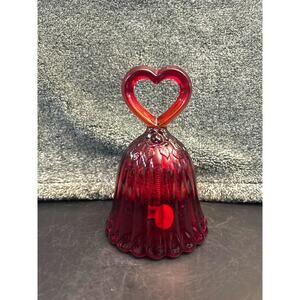 Vintage Fenton Glass Bell Ruby Red Heart Handle