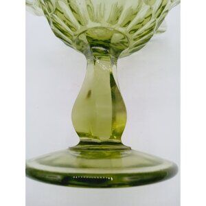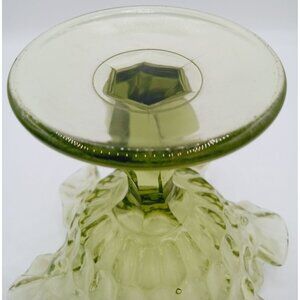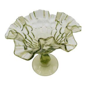 Vintage Fenton Glass Candy Dish Pedestal Green Thumbprint Ruffle Rim Compote 6"