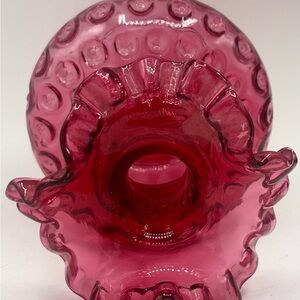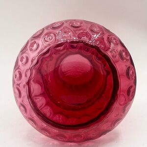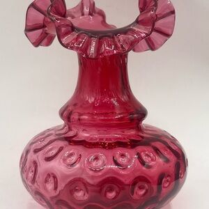 Vintage Fenton Glass Cranberry Coin Dot Thumbprint Ruffled Vase 6” Pink EUC