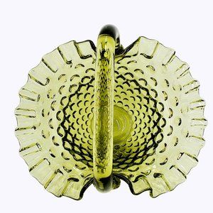 Vintage Fenton Hobnail Glass Basket Colonial Green Crimped Edge MCM
