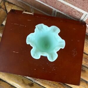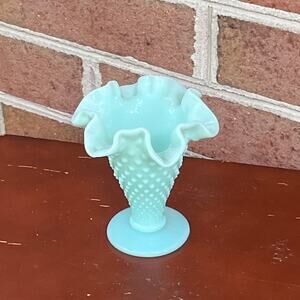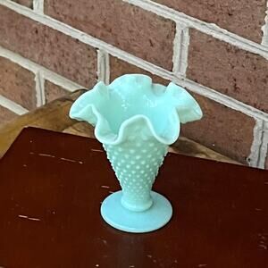 Vintage Fenton Hobnail Pastel Green Milk Glass Vase MCM Ruffle Rim RARE