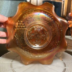 #FentonGlass #CarnivalGlass #MarigoldGlass #VintageGlassware #CollectibleGlass #IridescentGlass #GrapeAndCable #RuffledBowl #VintageHomeDecor #FentonCarnival