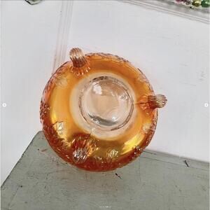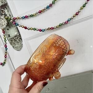 Vintage Fenton Marigold Carnival Glass Footed Bowl Grape Leaf Pattern Orange
