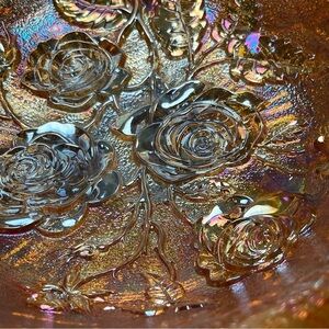 Vintage Fenton Marigold Carnival Imperial Open Rose Footed Bowl 10" dia. EUC