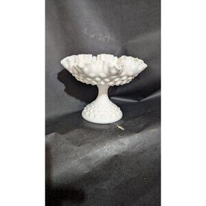Vintage Fenton Milk Glass Hobnail Compote Candy Ruffled Edges 5.5" Tall White M