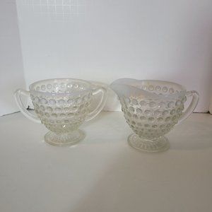 Vintage Fenton Opalescent Footed Glass French Cream & Sugar Set