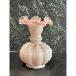 Vintage Fenton Pink Peachcrest Crimped 6" Vase 1940-1969 Retired Collectible Gla