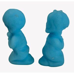 Vintage Fenton Praying Kneeling Children Satin Blue Boy Girl 4" With Sticker