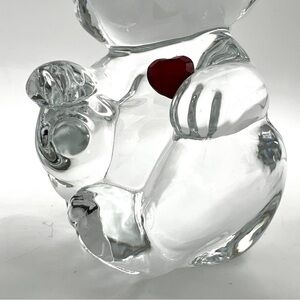 Vintage Fenton Red Ruby Heart Fenton Clear Glass Birthday Teddy Bear Figurine