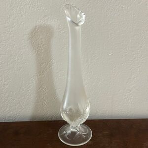 Vintage Fenton Ruffled Strawberry 11” Vase Clear Frosted Satin Matte