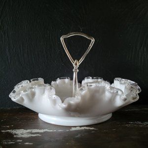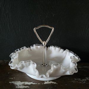 Vintage Fenton Silver Crest 8" Bon Bon Dish with Handle, Candy Dish with Handle