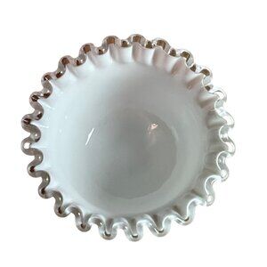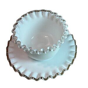 Vintage Fenton Silver Crest Mayonnaise 2 Piece Set Milk Glass Scalloped Edges