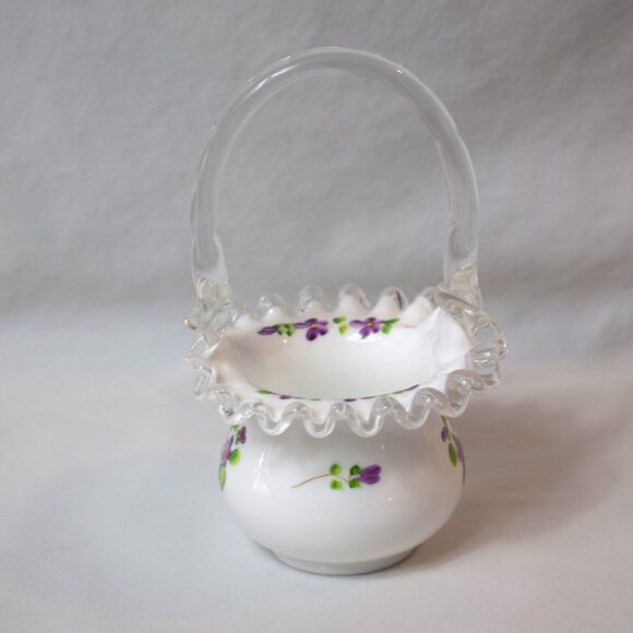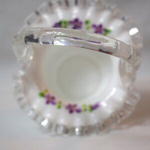 This Delicate Little Fenton Basket has beautiful hand painted violets inside and outside
