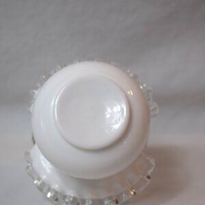 This Delicate Little Fenton Basket has a clear glass ruffled edge and bamboo inspired handle