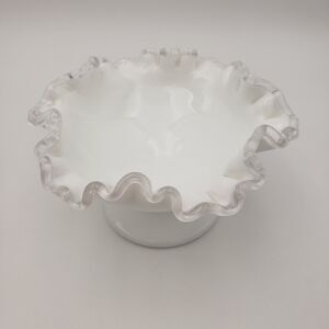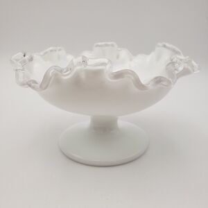 Vintage Fenton Silver Crest Milk Glass Compote Circa 1942-1972