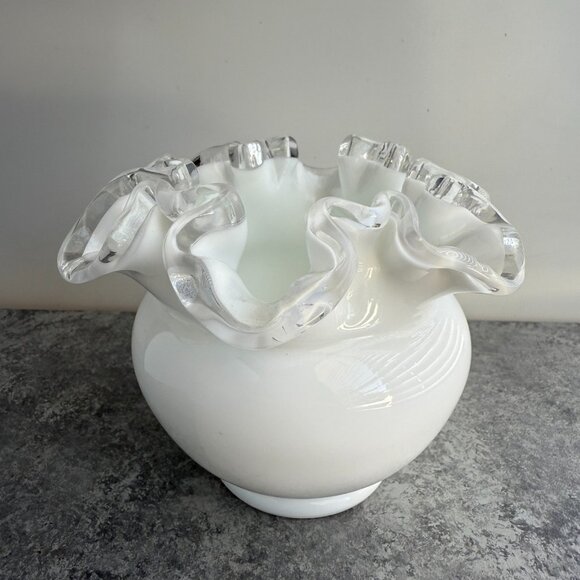 Vintage Fenton Silvercrest Milk Glass Ruffled Vase 4"