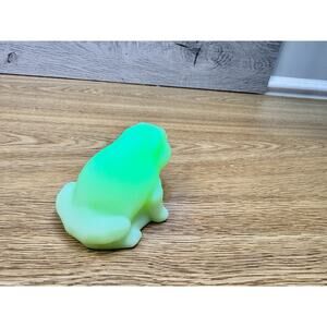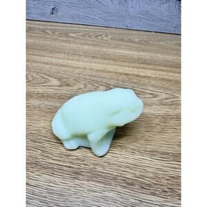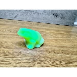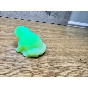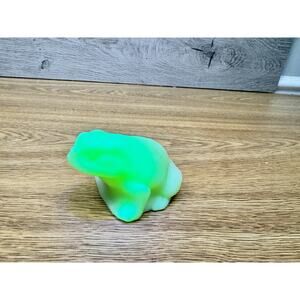 Beautiful Fenton Glass Frog Figurine made of translucent Vaseline glass that lights up brilliantly under blacklight. This collectible piece showcases Fenton’s exceptional craftsmanship, featuring a soft satin finish and classic frog shape.