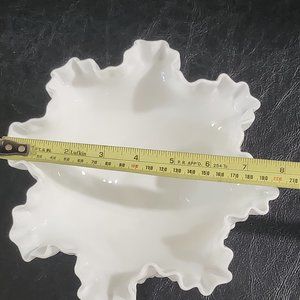 Vintage Fenton White Milk Glass Hobnail Crimped Ruffle Edge 3 Footed Decorative