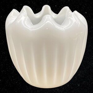 Vintage Fenton White Milk Glass Pinched Rose Vase Bowl 4”T 4.5”W