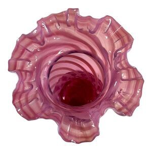 Vintage Fenton Pink Opalescent Swirled Art Glass Vase w/ Ruffled Edge 8" Floral
