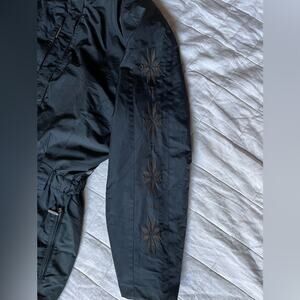 Great condition, does have some cuts on the hem of pants & a missing zipper.
