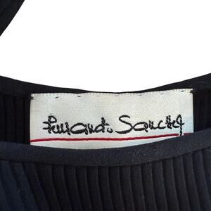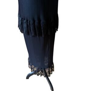 Vintage Fernado Sanchez Dress Sheer Accordion Pleat Lace Black Tiered Column