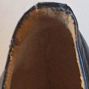 Gorgeous vintage Black Leather Pumps with removable Vintage Rhinestone, Sparkly, Toe Clips.These shoes are in vintage used condition believed to be 60's Shoes were well maintained and look absolutely gorgeous. What a way to make a statement. There are no major flaws that I can see, there is minor splitting on back of right shoe as shown in photo. Great pair of vintage shoes.