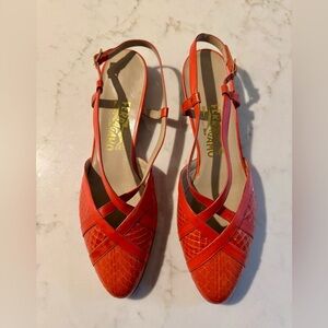 Vintage Ferragamo Orange/Red Strappy Slingback Sandals Size 11AAA (Narrow)