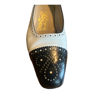 Vintage Ferragamo Square Toe Black and White Pumps Perfect Condition siz…