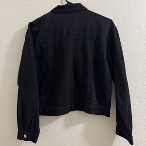 Vintage 100% cotton black cropped jean jacket with silver buttons and pockets.