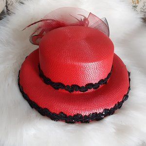 This is a Beautiful Red & Black Church, Derby, Wedding, Special Event Vintage Hat