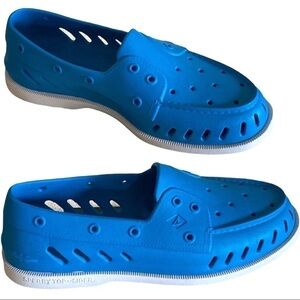 NEW!!!Bodly shaded buoyant and built r with a reimagined version of SPERRYS Authentic Boat shoe. Super lightweight design sprinkled with perfs & softened cushioning. *OrthoLite insole for all day comfort. Wear around the house, running errands, beach shoes,traveling shoes, airport shoes