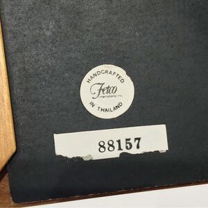 The frame is handcrafted with a decorative wood inlay. Holds a 5x7" photo and is ready to stand or hang.