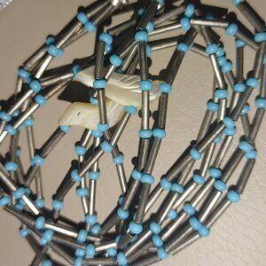 Vintage Fetish Multi Strand Necklace Turquoise Silver 925 Bead Mother Of Pearl