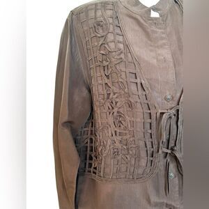 Vintage Fidgi Sport Silk Floral Vest Mandarin Collar Blouse
