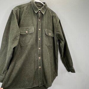 Vintage Field & Stream Heavyweight Flannel Shirt XL Men Olive Green Button Up