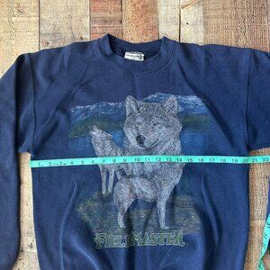 Vintage Fieldmaster Wolf Graphic Sweatshirt Navy Blue Cotton Blend Size M