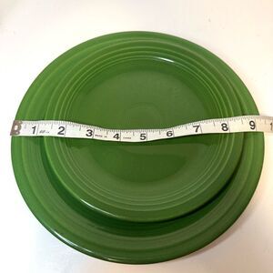 Vintage fiesta in 7” salad plate and 9” luncheon plate. In color Forest Green from circa 1951-1959. Salad plate has a little chip on the rim. Review images carefully.