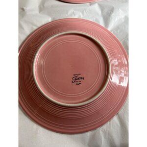 Step back in time with this elegant set of vintage Fiesta rose plates, crafted by the iconic Homer Laughlin. Each 12 inch plate showcases timeless craftsmanship and a soft rose hue, perfect for adding charm to your table. These plates hold stories of shared meals and warm gatherings, waiting to be part of your collection. No bundling this listing due to weight.
