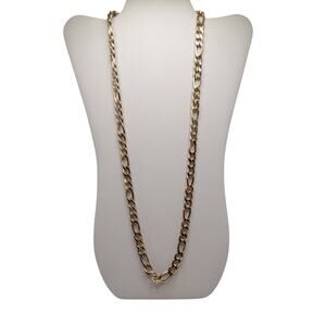Description: This is a vintage 30 Inch Figaro link chain necklace from the 1980s. The necklace is 3/8 inch in width and has a lobster clasp. It looks like it has rarely been worn. This would be a great addition to your jewelry collection or make a great gift!