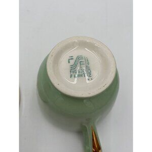 Vintage Figgjo Flint Norway Green & Gold Gravy Boat With Saucer Mid-Century Mode