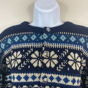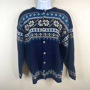 Vintage Figgjo Norway Fair Isle Apres Ski Hand Knit Sweater XL Wool Cardigan