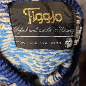 Vintage Figgjo Norweigan Pure New Wool Blue Cream Cardigan Sweater M. 100% pure new wool. Silver moose buttons. Excellent condition.