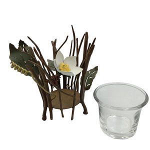 Vintage Figi Graphics Metal Sculpted Floral Votive Candle Holder, Glass Insert,