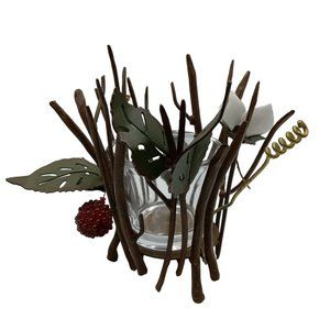 Woodlands metal floral and fruit sculpted votive candle holder. Figi Graphics, 2000. Original sticker on the bottom. Nice gift for the nature lover and those with a woodland decor.
