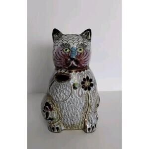 Vintage Figural Cat Cloisonné Teapot 5.5 in L x 5in H x 3in W