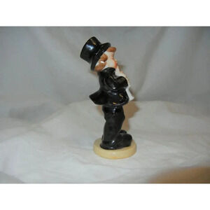 VINTAGE FIGURINE OF A MAN/BOY IN TUXEDO & TOP HAT PLAYING CLARINET SIGNED JAPAN It measures 5" tall and has a 2" base. This is a lovely figurine of a man or boy dressed in a black tuxedo, wearing a top hat, and playing his clarinet. It is in excellent vintage condition, with a few wear points on the black paint, typical of its age.