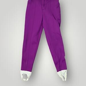 Fila Ski Team Italia, Alberto Tomba, vintage ski suit, snow bibs, two piece snow set, 90s ski wear, retro snowsuit, apres ski, colorblock, purple and white, stirrup pants, winter olympics style, vaporwave aesthetic, 80s ski fashion.