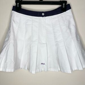 This Fila mini skirt features a crisp white color with a pleated skater style, perfect for athletic and casual occasions