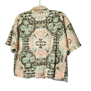 Vintage Filati Button-Up Shirt L Abstract Green Peach Pattern Cotton Made in USA